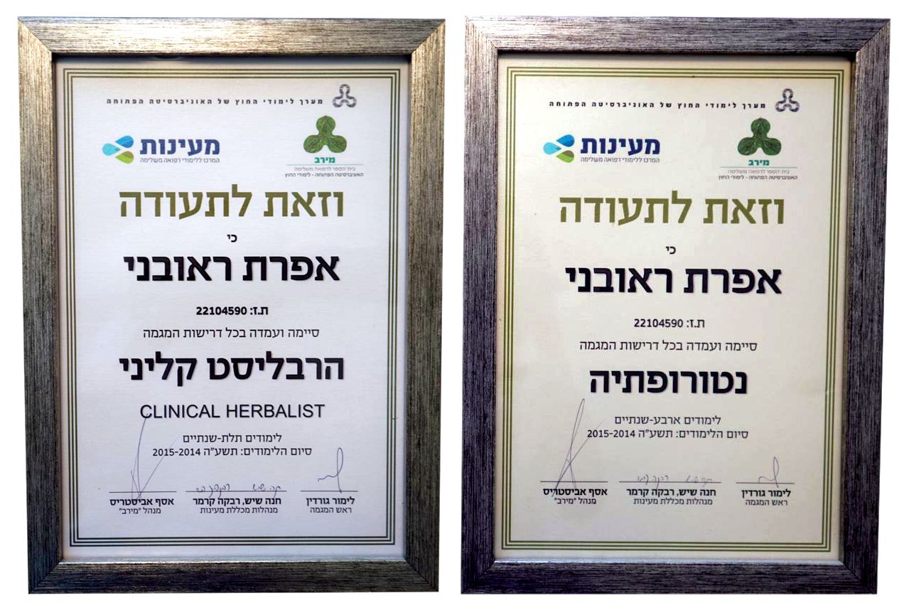 שמי אפרת ראובני ואני נטורופתית מוסמכת N.D והרבליסטית קלינית CI.H, בוגרת מסלול ארבע שנתי במכללת מעיינות לרפואה משלימה של האוניברסיטה הפתוחה.